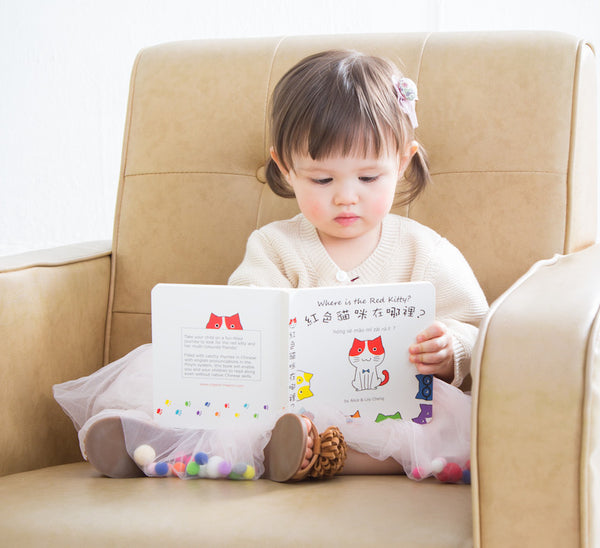 Maomi Books feature 7 coloured kitties, each with their own talents and personalities. The books are written in Traditional Chinese as a Mandarin rhyme. The storyline is delivered in with a strong repeating cadence, making the book catchy and fun for children age 0+. The text is supported by inline Pin Yin to help non-native parents and children with mandarin pronunciations. In addition, an english translation of the storyline is provided in the back of the book.